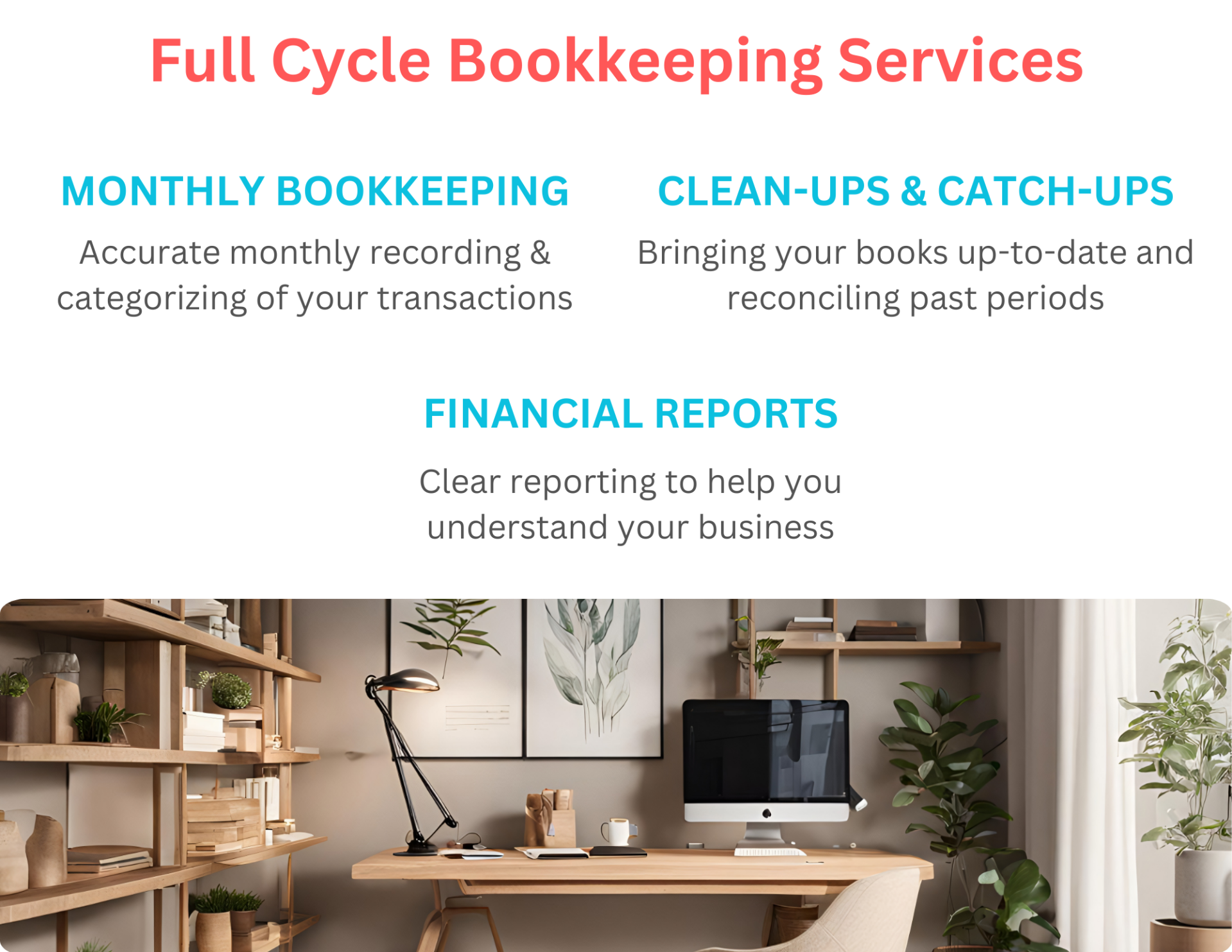 Whether you're looking for monthly support, a one-time clean-up, or help organizing financial documentation, we’re here to make bookkeeping simple, approachable, and stress-free.